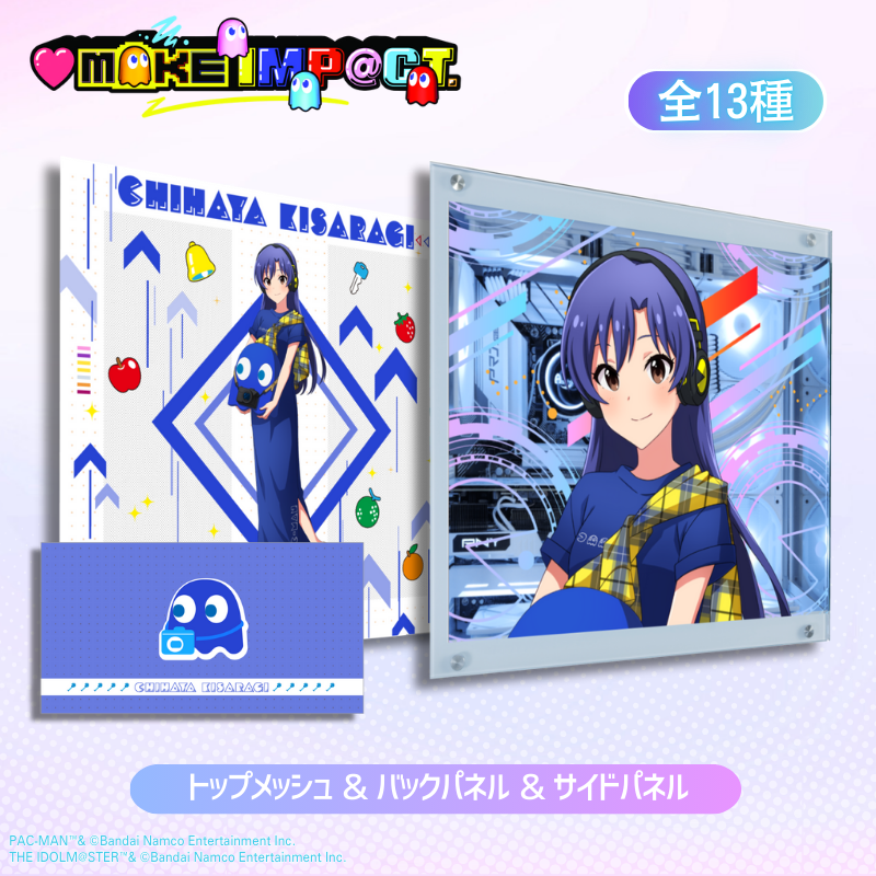 「アイドルの等身イラストデザインや『パックマン』のゲームアイテムなどを採用したメッシュタイプのバックパネル」